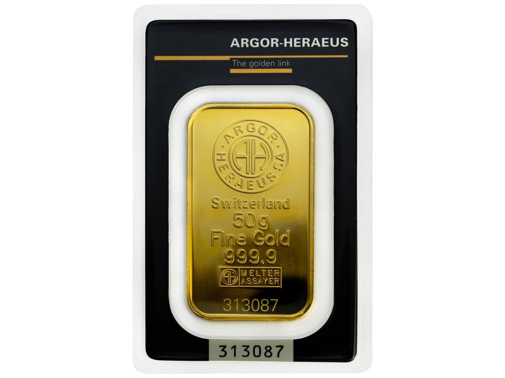 Investiční zlato - zlatý slitek 50g Argor Heraeus SA