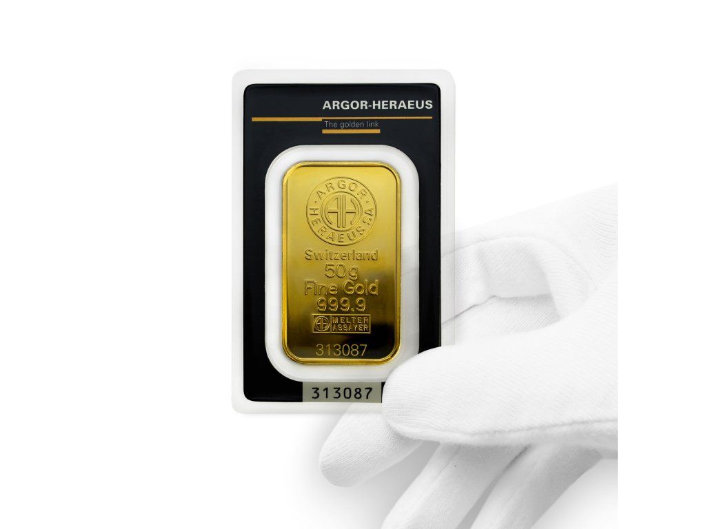 Investiční zlatý slitek Argor-Heraeus SA o hmotnosti 50 g představuje spolehlivou formu uložení kapitálu v ryzím zlatě. Slitek je vyroben ze zlata o ryzosti 999,9/1000 (24 karátů) a splňuje londýnský standard Good Delivery (LBMA), díky čemuž je bez problémů akceptován na všech světových trzích.
